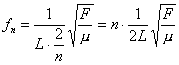 Możemy tu skorzystać ze wzoru (patrz rozdział Mody drgań struny - opis):