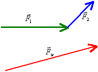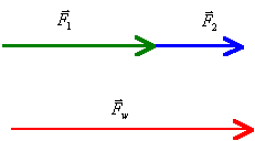 Kilka sił działających na ciałoNa ciało może działać jednocześnie więcej niż jedna siła. W takiej sytuacji wpływy od wszystkich sił - składników dokładają się do siebie i w efekcie otrzymujemy pewien efekt sumaryczny ich działania. Ten efekt połączonych sił ze sobą jest jakby nową siłą zastępczą i nazywany jest siłą wypadkową. Siła ta zastępuje działanie wszystkich sił na raz. Matematycznie obliczenie siły wypadkowej polega na zsumowaniu wektorów sił składowych (patrz: dodawanie wektorów). Przykłady znajdowania siły wypadkowejOto niektóre przypadki dodawania dwóch sił (wyznaczania siły wypadkowej): 1. Siły działające wzdłuż tego samego kierunku i mające ten sam zwrot